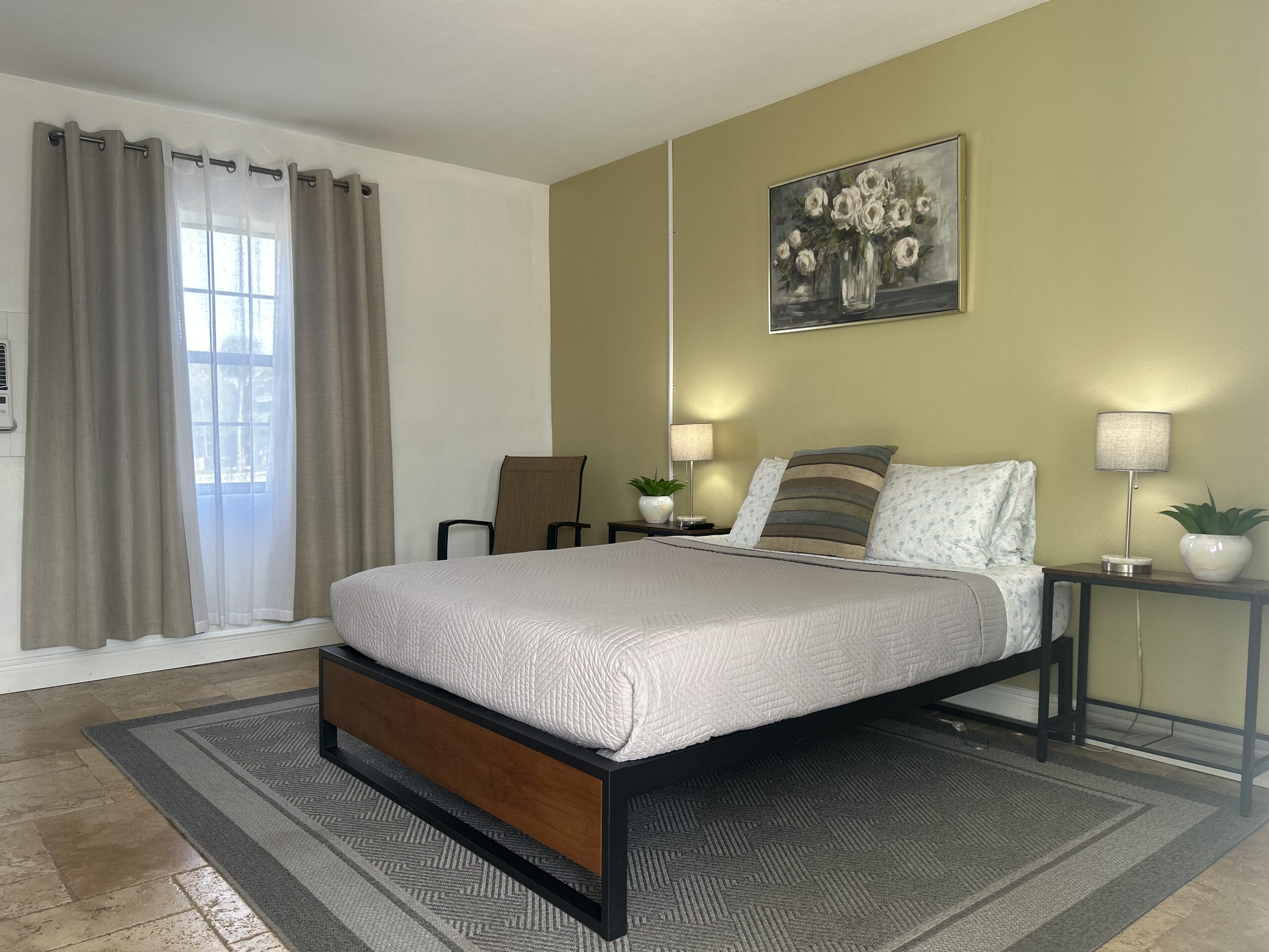 Andrea made check in very easy. Just pay and get your room code. Parking about 5 steps from the room was also very convenient. Room was immaculately clean and comfortable. Good place to stay before a cruise. There is some road and train noise but if you are tired from a drive it really wont matter. Price is excellent. Modern updated version of the old motor courts from my youth before all these big name brand places to stay. Actually a nice blast from the past. I would stay here again without hesitation.